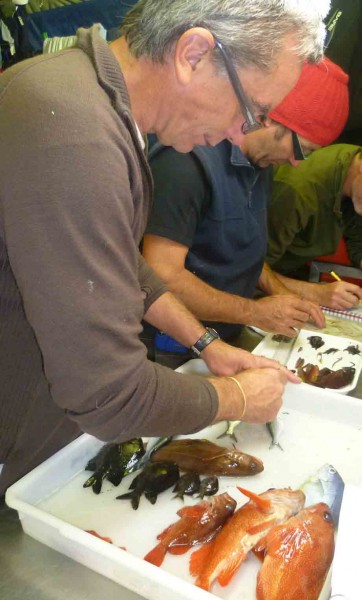 Tom tags the larger fish noting which ones are going to Auckland Museum