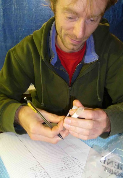 Chief note taker – Mark records all the specimens’ details and where they are going