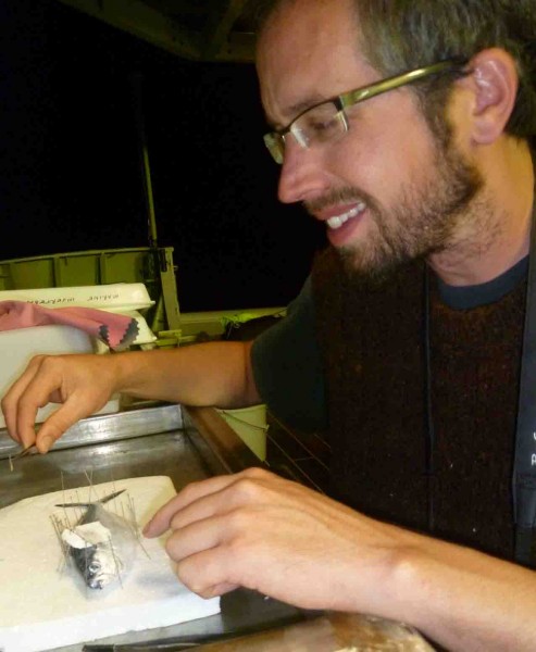 Pin work – Ged pins the fish ready to be photographed. Fish are photographed on their left and samples taken from their right so you won’t see any missing bits!