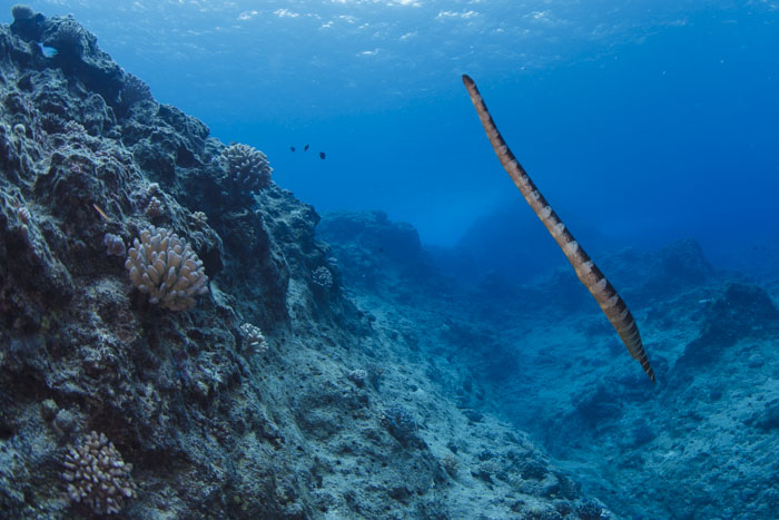 Swimming alongside one of Niue’s most recognisable marine inhabitants, the banded sea snake.
