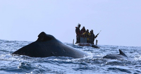 An unexpected low over Raoul Island forced the Braveheart to relocate to a new location near the Meyer Islands early this morning. Nevertheless ‘Thomas the Tag Engine’ was on the water as soon as possible and off to a great start. First we sighted a mother/calf pair, and shortly after they surfaced we heard a beep on our satellite tag receiver which informed us that this whale had already been tagged. After photographing the mother’s fluke it was confirmed that we tagged this whale yesterday.